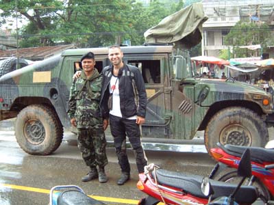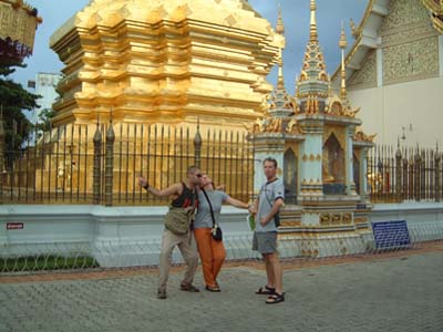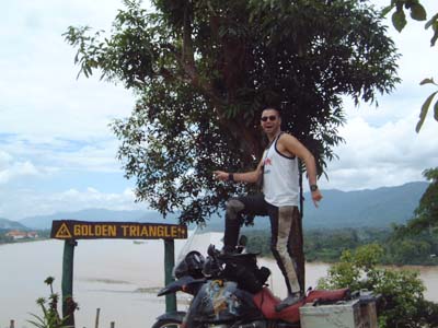 Well, off to Chiang Rai and the golden triangle then. We went in search of the British Bikers once again. They had a left a day before us and since I had decided we would enter Laos from the south we had not made arrangements to meet up in the north. Acting spontaneously we decided it would be a laugh trying to navigate the roads in the north of Laos, so we went in search of the Brits. We didn�t find them in Chiang Rai, but did manage to meet up with Gion Paulin (Swiss, Yamaha XT550), another overlander we keep running in to (and partying with). The next day was a day spent touring the countryside around the infamous Golden Triangle (see pics). This included nipping up to the Burmese border to say hi to the other side (see smiling commando).