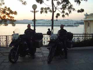 Arriving in Udaipur is much the same as any Indian city with confusing road signs and even more confusing directions from the locals. Our trusty GPS guided us into the town centre, but this was nowhere near the old city and the hotels. I (Steven), having visited Udaipur before, knew how to orientate myself from the lake that is home to the Lake Palace hotel. After blagging our way past the gatekeeper to the hotel complex we pulled into the parking lot for a quick Sunset snap of the brothers outside the Lake Palace Hotel (see picture). About 30 seconds later we met Izik and Reut who hopped onto our respective bikes and guided us to the hotel where they were staying. Result! A room for Rs200 (USD 4) with an on suite bathroom � The Raj Palace Hotel is very recommended.