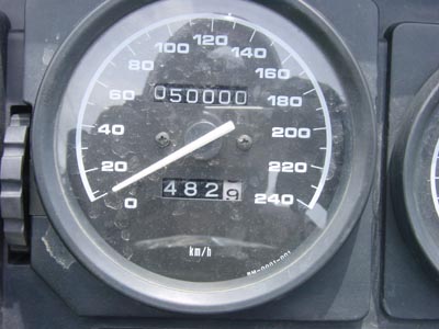2001-10-21 in Padang, Sumatra, Indonesia Taking the love boat! The things I do for my family, I tell ya! I am of the opinion that riding across Java is no more dangerous than riding across London. But in order to satisfy the nerves of the women in both Louise�s and my family I am presently in the confinement of Indonesia�s answer to the QE2, and believe me � there is no comparison. Yesterday my odometer clocked 50,000 kms (see pic) and to celebrate this I thought the best way to would be to be trapped on a moving prison serving less-than-prison-grade food and keeping most of the exits locked. I have new empathy for inmates of prison who get their one hour of sunshine before going back to the slammer. As I pace the deck which is littered with mattresses and chain smoking locals, I wonder why I didn�t just put on an �I love the USA� T-shirt and drive across Java, I am sure I would have preferred the experience!
