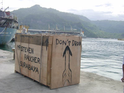 The bossman gently calls me aside and tells me that he has spoken to his superiors and the least they can charge me for is five metric tons of cargo. He also explains that they have bought all the supplies for the crate and of course I am liable for these costs. So in the end shipping my bike around Java has cost me more than it would to ship from Singapore to Australia.