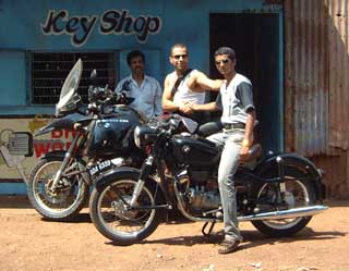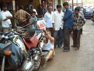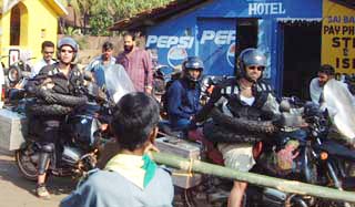 2001-02-28 in Goa, India Last Pics of Goa Finally. I did it. I managed to escape the evil clutches of the palm trees and coconuts Before I left we had an interesting week sorting out the freshly arrived spares and more importantly the not-so-freshly-arrived Ariella (craving sleep and sun in equal doses). The first errand to run was of course, the tyres. My bike had developed a rather nice wobble due to warped (read: completely shagged) tyres.