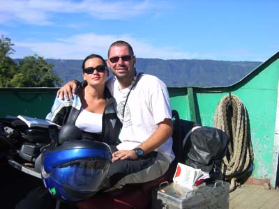 Finally convinced that my bike was safe I headed back to my hotel for some well needed sleep. No surprise really that at 6:10 am there was a bang on my door and the local school teacher/translator was there to collect me and take me to port. The look on my face must have said it all when I saw the captain�s boat. During the course of the night the tide had dropped to such an extent the deck of the captain�s boat was six feet lower than the jetty! After careful thought I threw caution to the wind and rounded up a crowd and we successfully lifted the bike above our heads and passed it to the second team on the jetty. Phew, just customs and police clearance to go and I will be free.